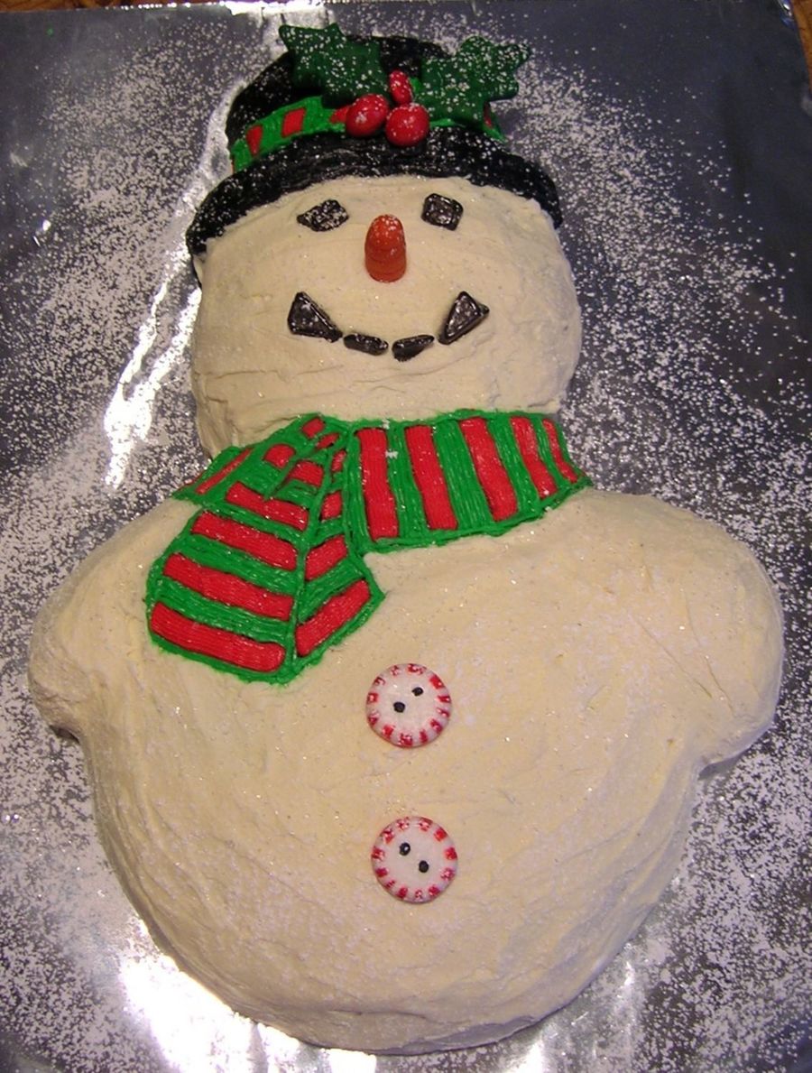 A Snowman cake order, made with my old wilton pan :) nose made out of marzipan (although everyone thought it was a real carrot), holly leaves also marzipan, chocolate "rock" candy to look like coal and of course peppermints for buttons! :)