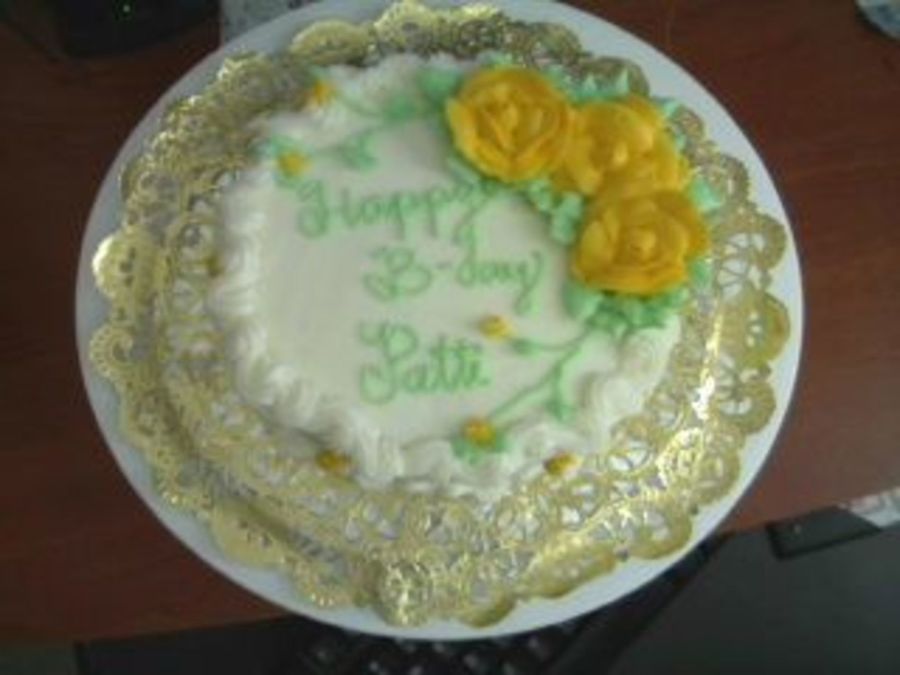 birthday cake with roses, rosettes, and rose buds