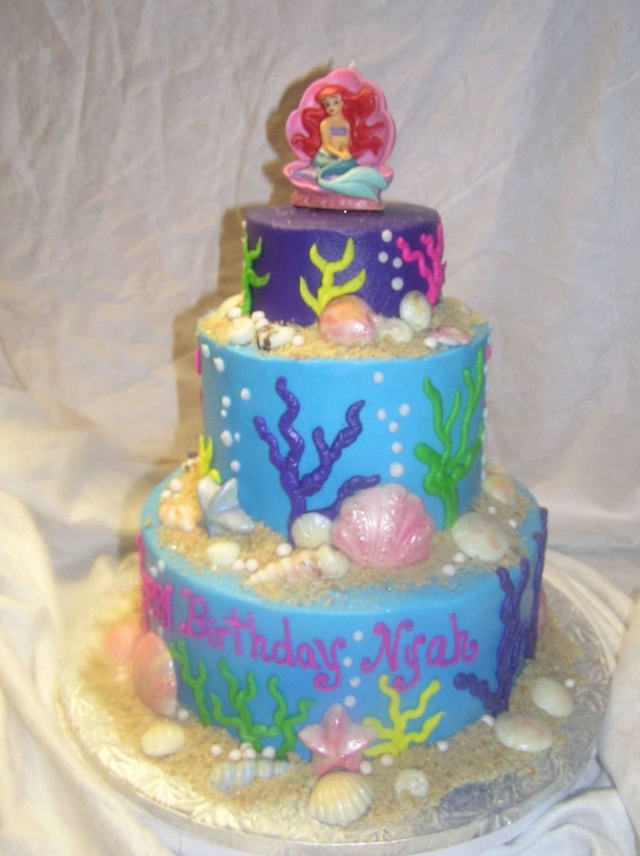 BC icing. chocholate shells with luster dust. Top was not complete when I took the picture. More "sand" and shells were on top near the candle. But it had to travel so we waited to put the candle onsite. Airbrushed a little on the blue.