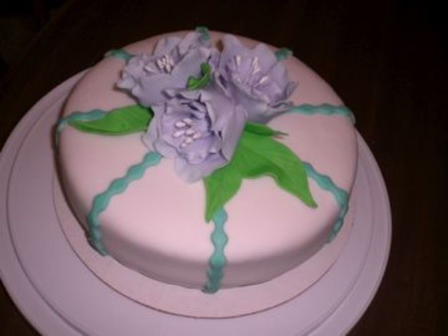fondant with fondant flowers. This cake was for my parents anniversary. The colors were their wedding colors.