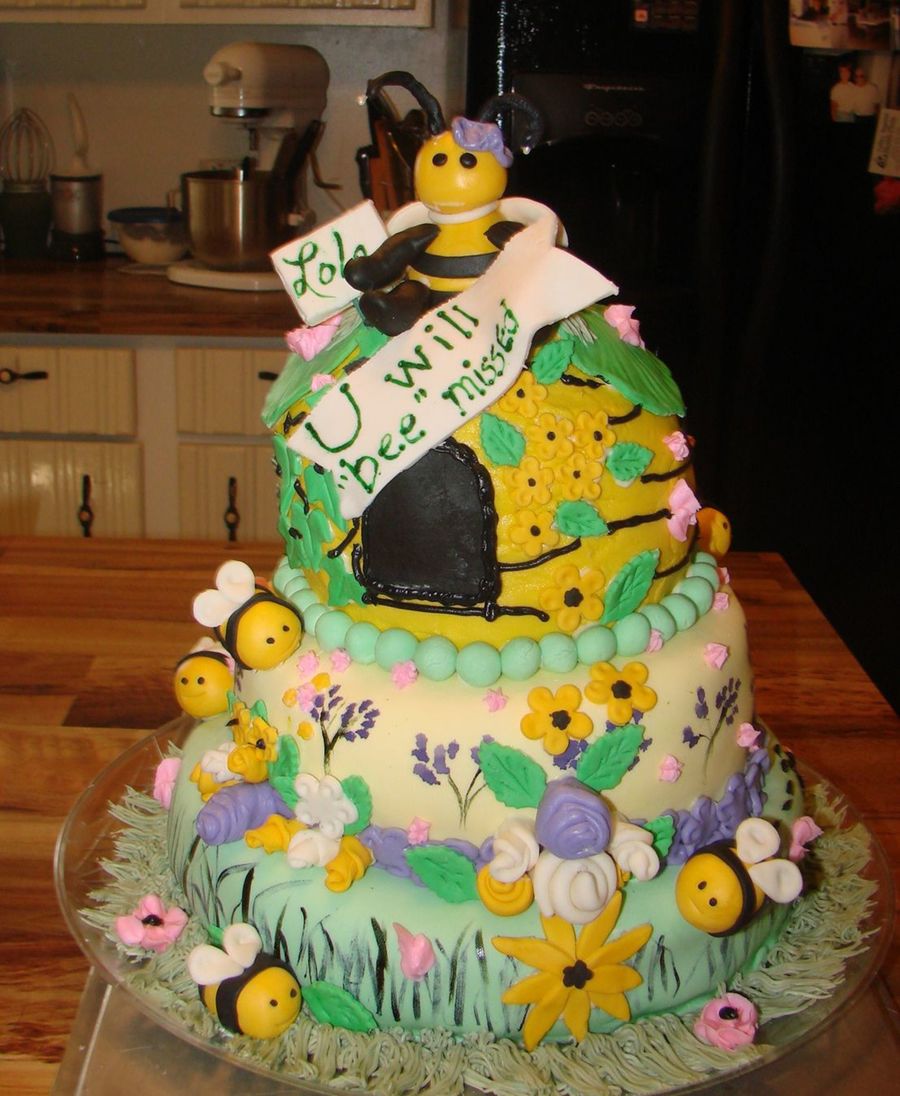 Lot's of firsts, and lots of mistakes! First fondant figures, first stacked cake, first fondant painting on cake, first try at ribbon roses...I still have problems with leveling, need to get a small level! Bottom is choc butter cake / twinkee filing, middle is WASC / choc ganache top is WASC /stawberry, bc and fondant decor. TFL and any suggestions greatly appreciate by this newbie. Cake inspired by many here on CC. Thanks!