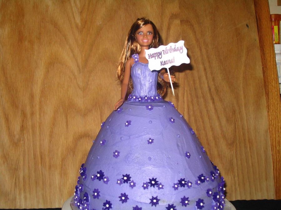 we used a single layer 8 inch cake under the wonder mold to make the cake tall enough to use a real barbie doll. just bc icing