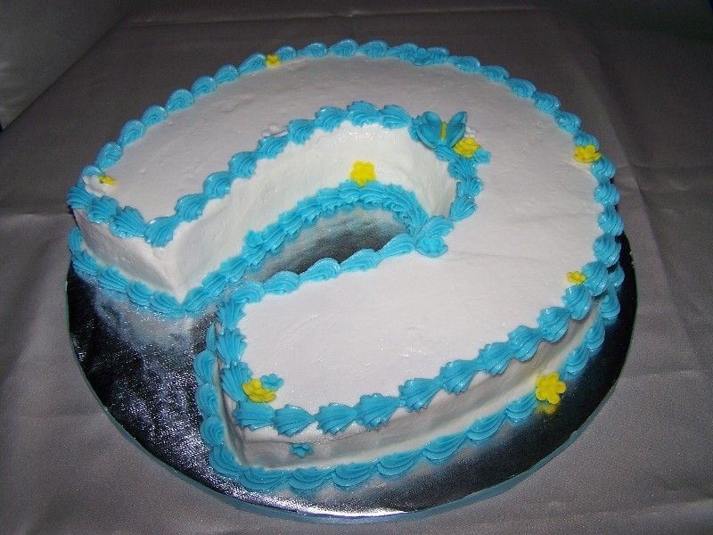 Strawberry cake with buttercream icing baked in Wilton's horseshoe pan. Cake 2 of a set of cakes for twins. Fondant flowers and butterfly.