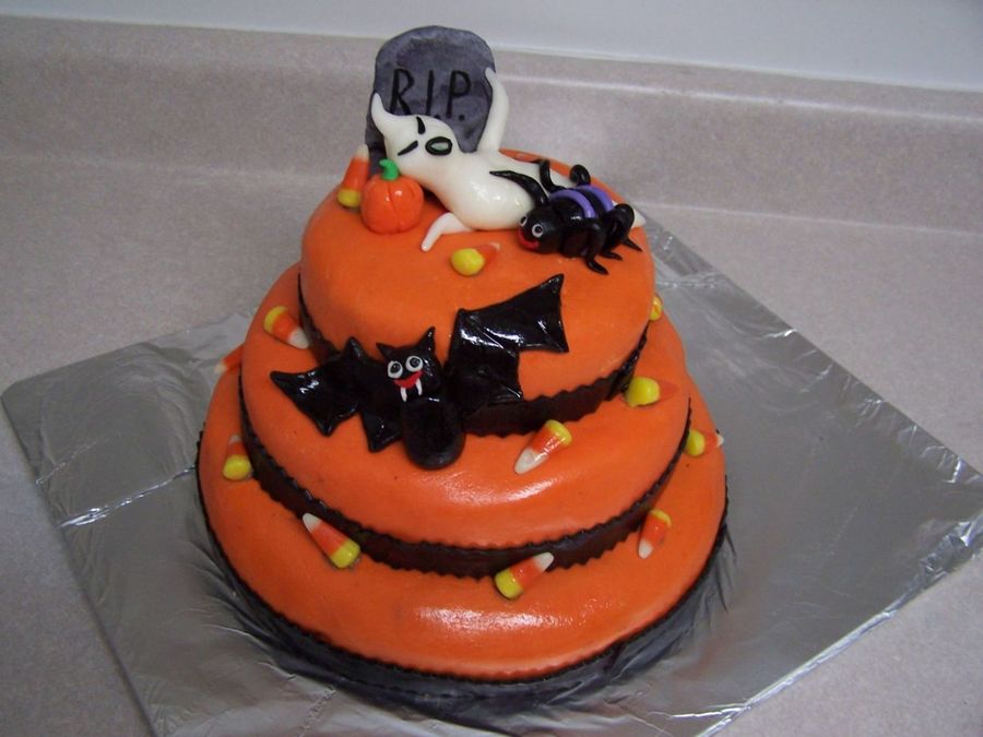 This is my third fondant cake. I really liked how it turned out except I wanted to make a dead tree to put next to the tombstone and couldn't figure out how to do it! Oh well, the cake still turned out cute for a newbie!