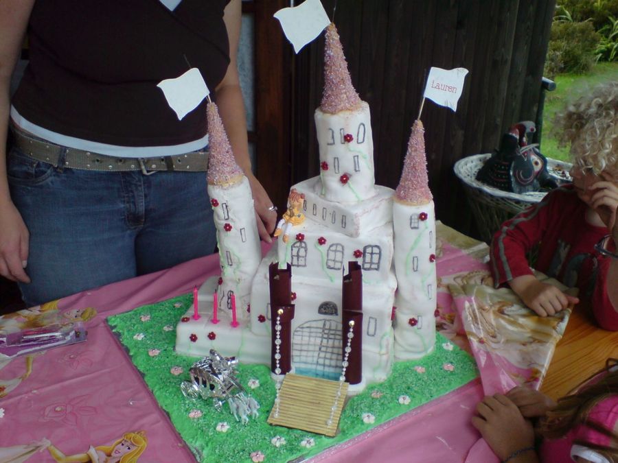 My first attempt at making my daughter's cake. The carriage is a wedding favor which I managed to purchase. Cake is sponge, swiss rolls and ice-cream cones.