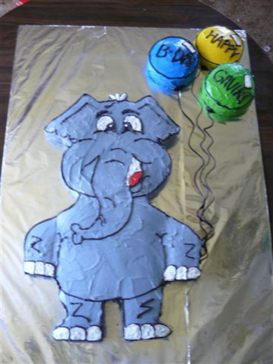 This was carved from two 11x14 cakes for my son's birthday. I went a little overboard on cake so we had a LOT of leftovers!! Each Balloon is a different flavor cake as well.