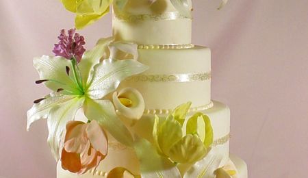 forgot to add, votives were places behind the flower arrangements on the bottom tier. There were fondant beads around all of the tiers and real ribbon as the borders.