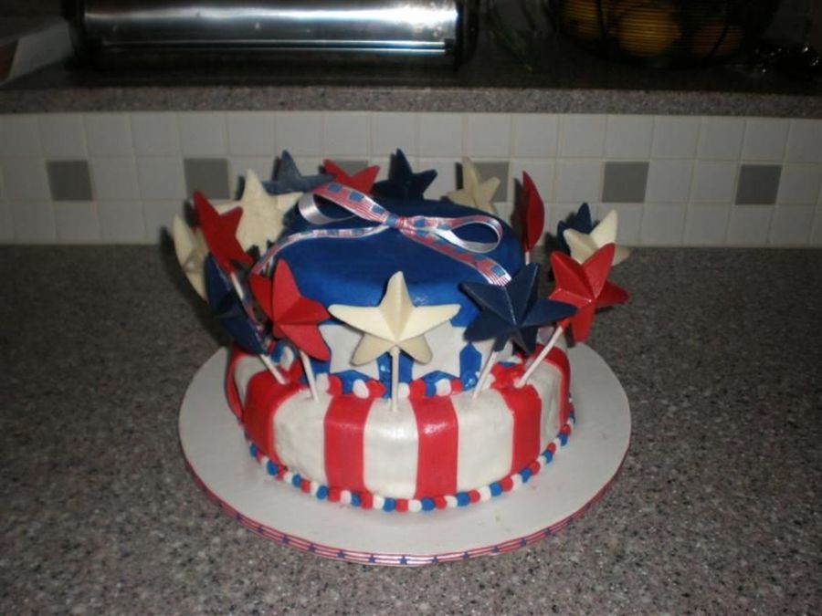 this is for a 4th July bday. decorated with fondant and I make the stars from white chocolate