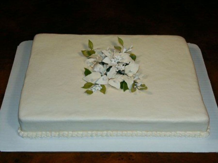 All buttercream in ivory with sugar flowers for decoration.