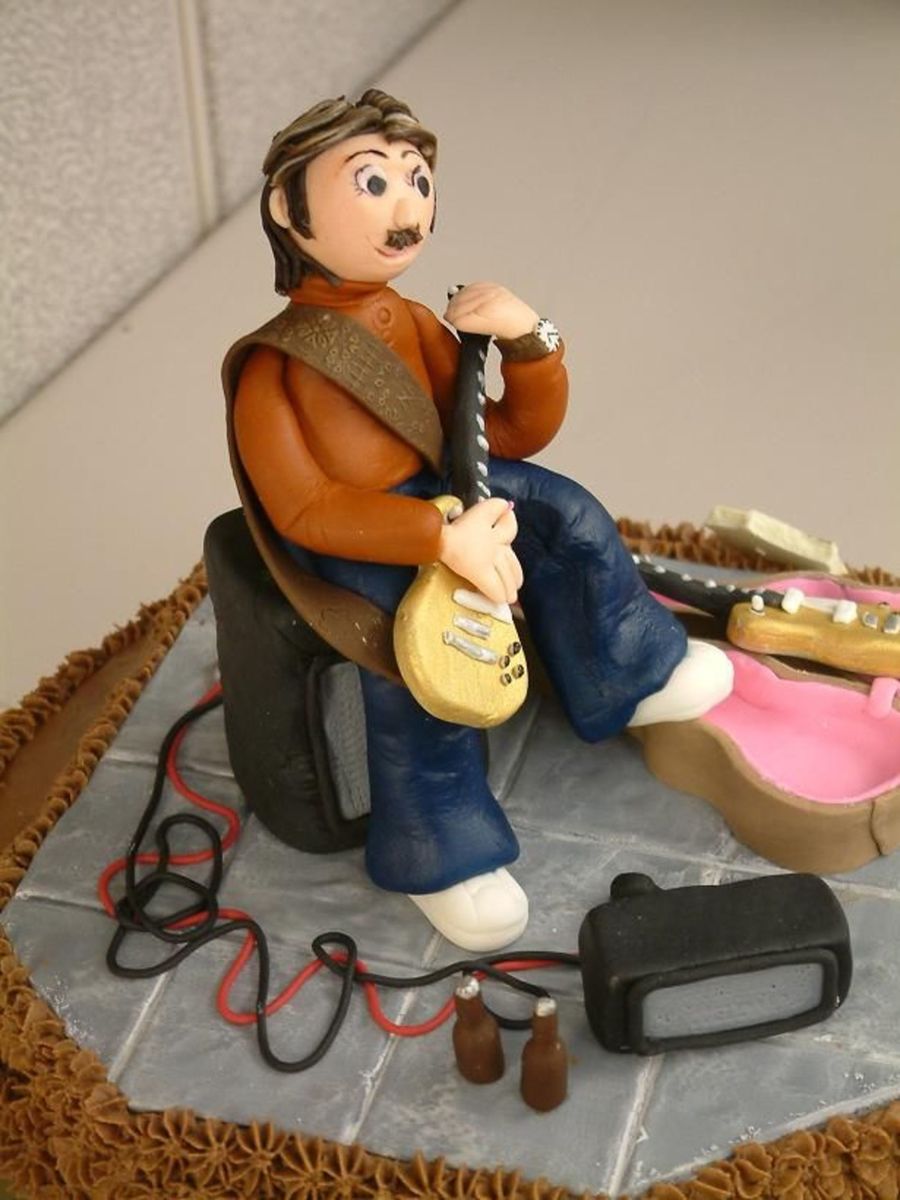 This is the cake topper for a co-worker who turned 60. As a youth he played in a band with his Gibson Les Paul gold top.guitar. This is my first work since my class with Lorraine McKay last Oct. 2008. Glad I am going to get to go to her classes in Houston in April. I need more help!