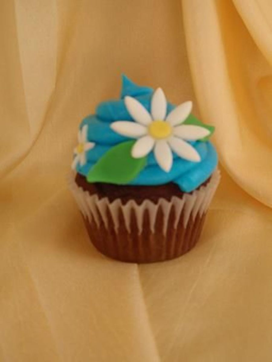 This cupcake is decorated and filled with buttercream icing. The little flowers are fondant! Thanks for looking
