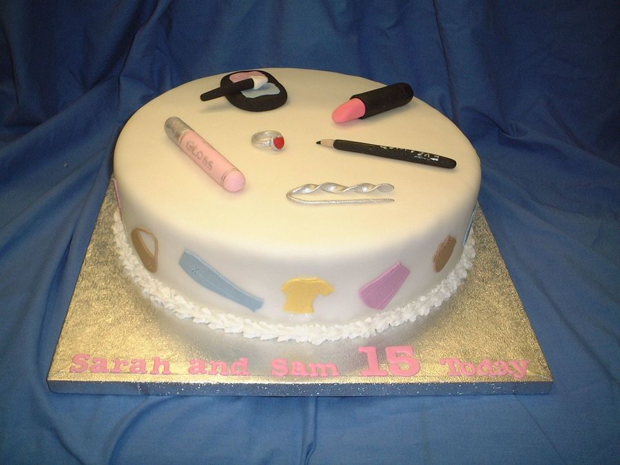 Madeira with fondant icing and accents. Made for 15 yr old twins.