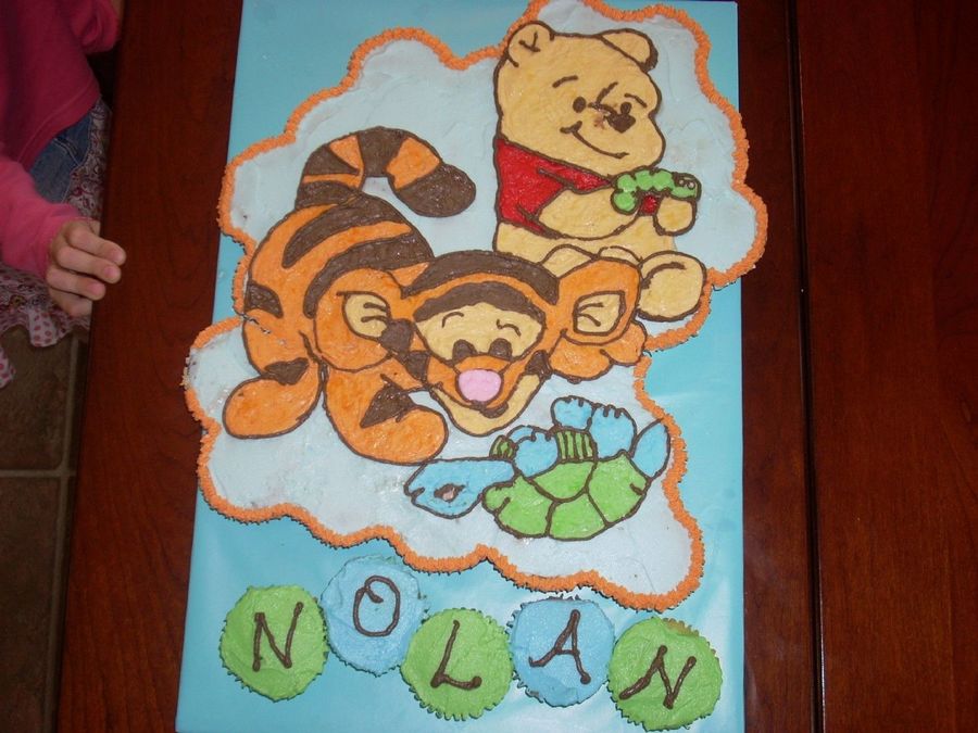 I made this for my son's 1st bithday. One of the kids at the party stuck their finger in Pooh's nose before I could get a picture. :)