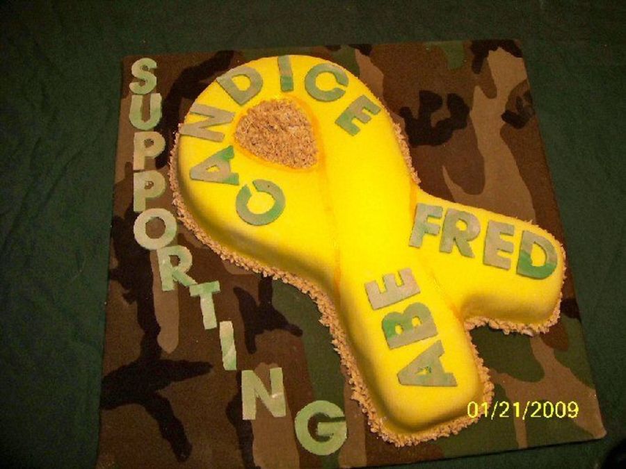 One of the ladies at my bank ordered this cake. Both her sons and one of their fiancees is deploying to Iraq and she had a going away party for them.