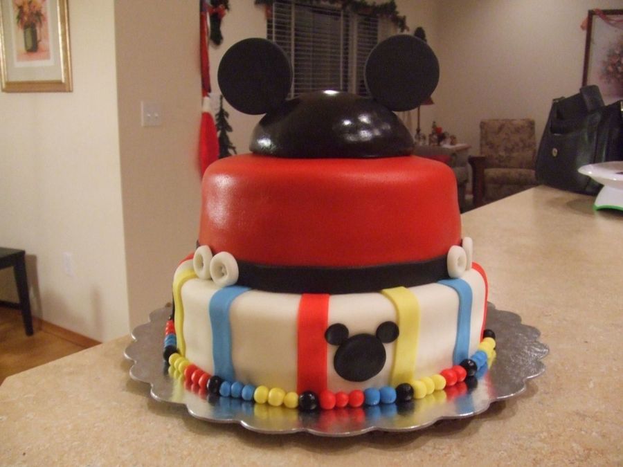 Chocolate cake with choc. filling, buttercream icing and covered in fondant.