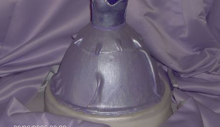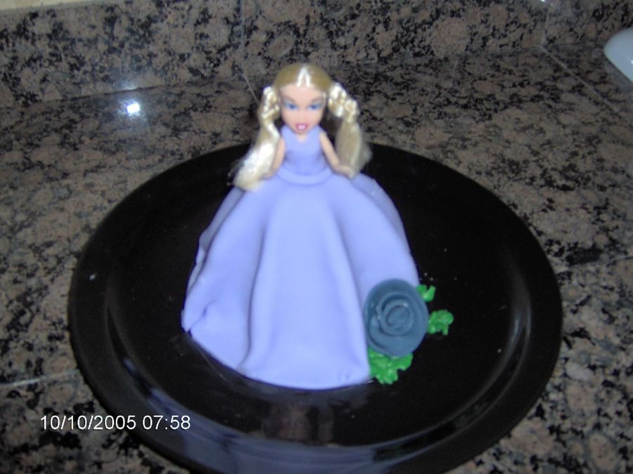 I am going to make 14 mini doll cakes for a Quince next month. I was practicing on the bottom part. I didn't have the mini doll head and used a bratz doll. It did not do this cake any justice. OH well, I am pleased with the bottom.