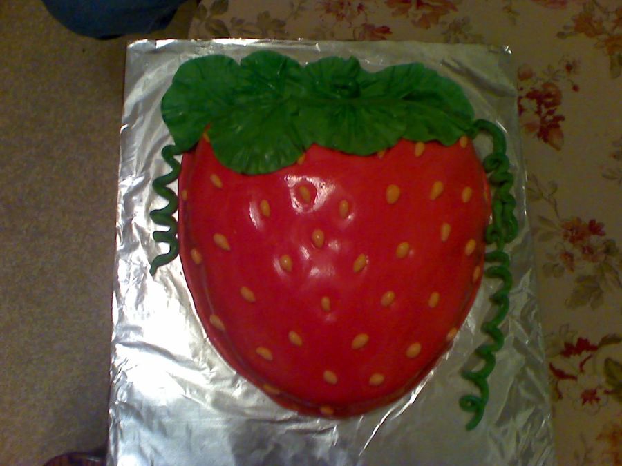 Strawberry Cake filled with strawberry creme filling, iced with buttercream , covered and decorated with rolled Fondant