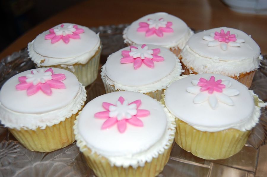 vanilla cake with vanilla icing (cheated and used Betty Crocker..) covered with MMF top and daisy cutouts.