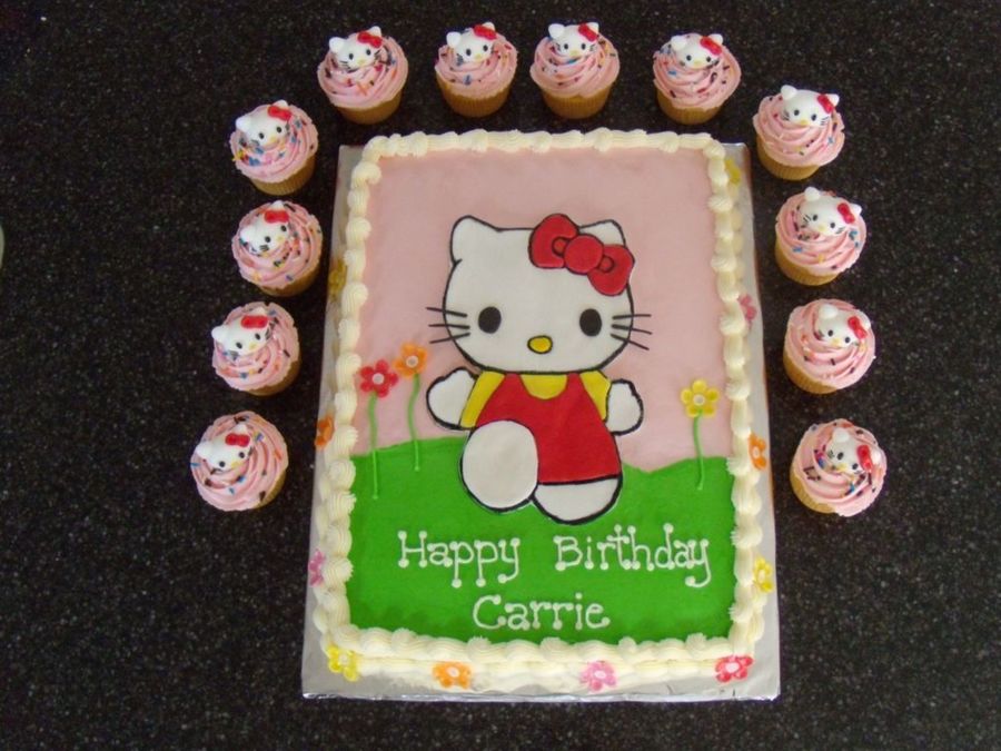 Thanks to Nunuk for sheet cake inspiration. Buttercream with fondant HK and fondant HK heads on cupcakes.