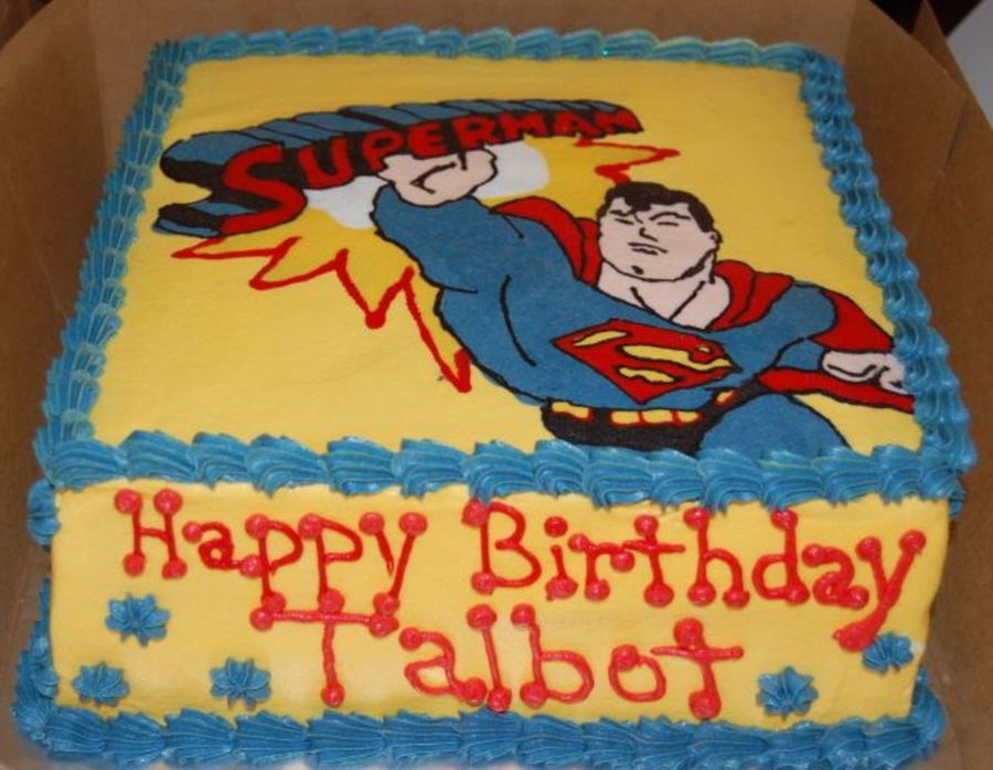 My sons 6th birthday. Superman is FBCT. Chocolate, chocolate cake with sugar cookie middle. Vey yummy.