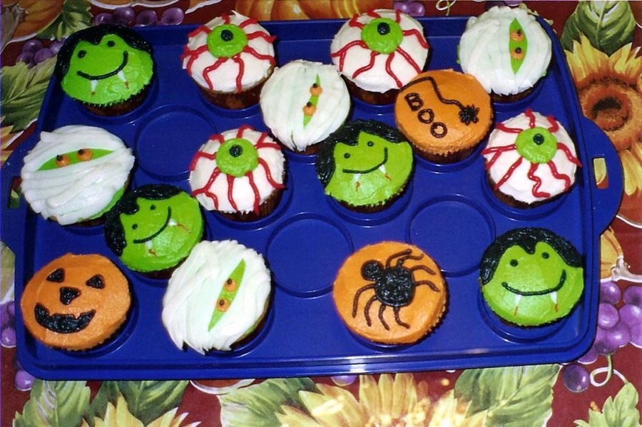 All BC icing. Yel. and Cho. cupcakes. Made for grandson's school Halloween party. Thanks to CC for Ideas.