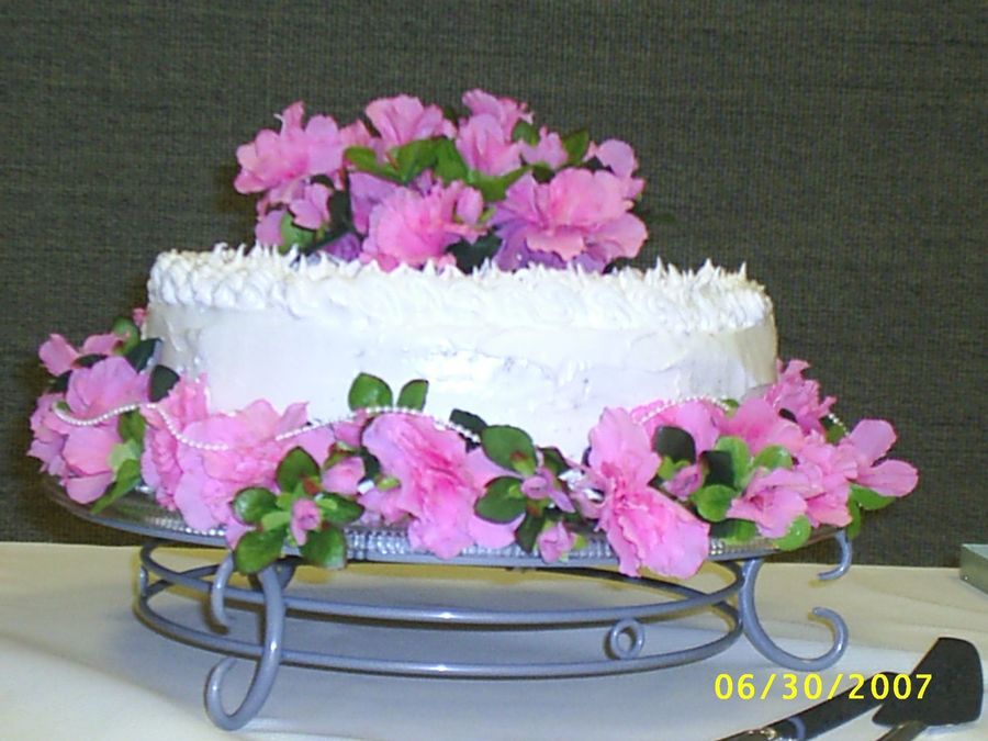 This is a frenc h vanilla cake with strawberry filling and a 7 minute style frosting.