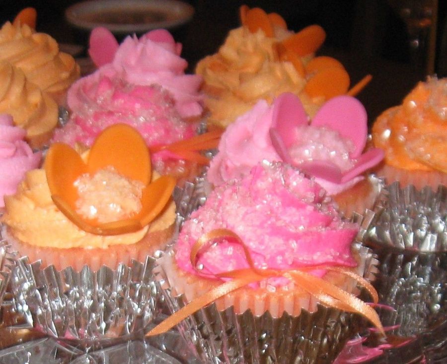 MMF flowers with butter cream icing and sugar sprinkles. Strawberry cup cakes filled with cream cheese and marshmallow fluff blended together.