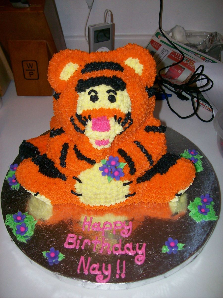 Using the stand up bear pan I made Tigger with buttercream and fondant for his tail.