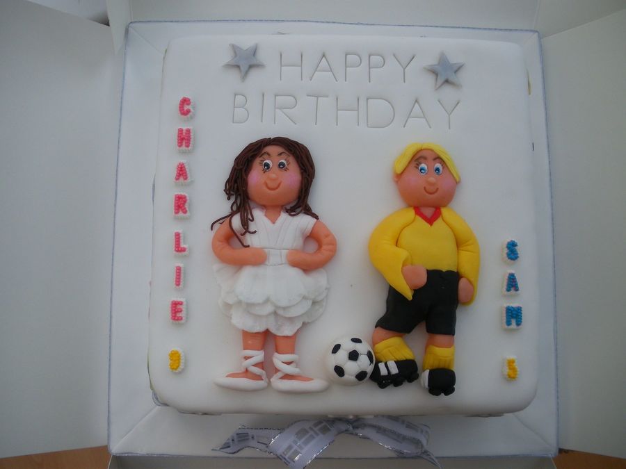 This was a cake I made for 2 cousins (boy & girl). I made half of the cake look girly and the other half for a boy so that they could cut it straight down the middle.