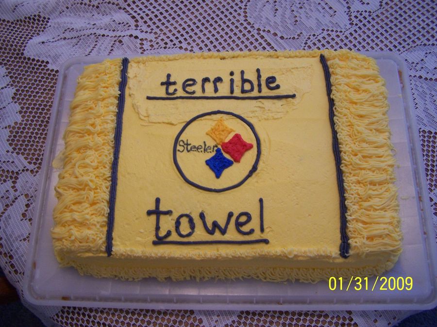 Had trouble with the terrible, had to redo it and messed up the top of the cake. Yea Steelers!!!!