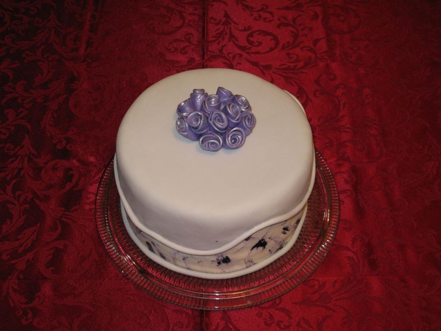 Simple duff roses w/ pearl dust. The purple on the sides is just daubs of violet food coloring, didn't have time for anything else.