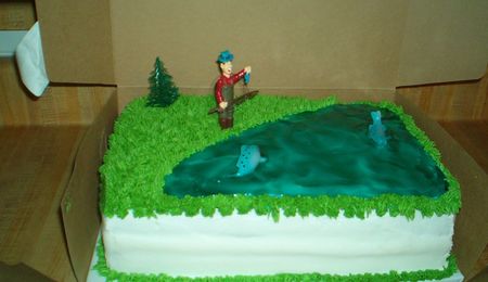 This was made for a trucking company that uses the Texas flag and the shape as their logo. I used matchbox forklift and truck cab. The trailer I actually made from real match boxes and iced over them and glued buttons on for wheels. Then I "glued" the "pipes" on to the trucks with icing.
