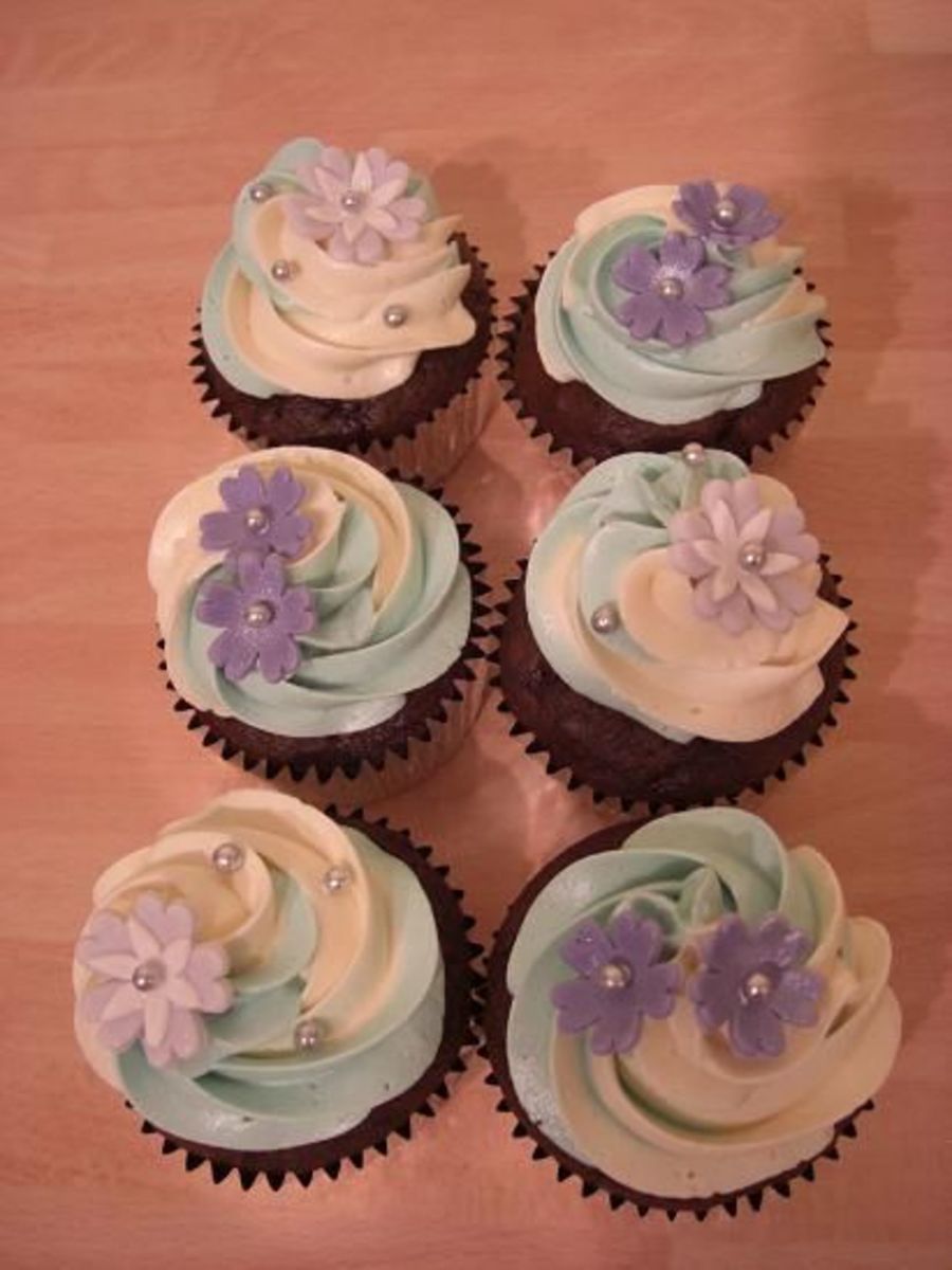 Cupcakes made to go with the belly cake. 2-tone smbc, fondant flowers