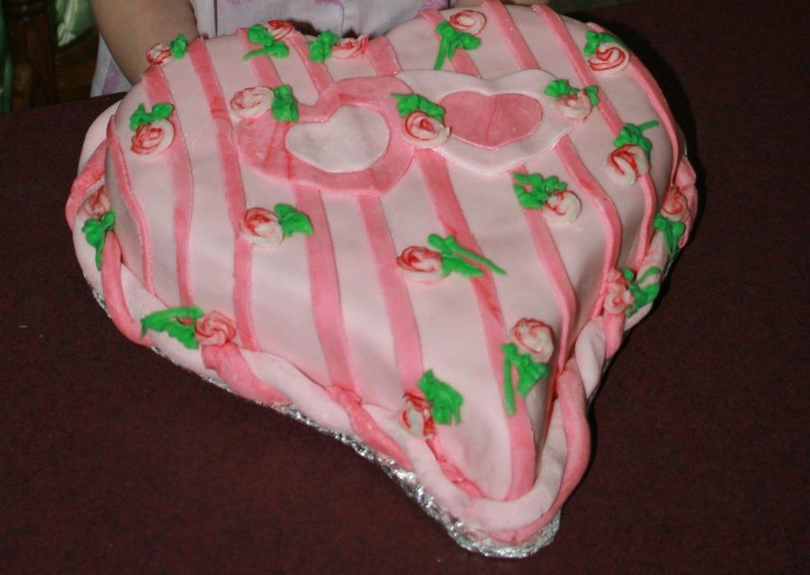 Heart shaped cake covered in MMF. All decorations MMF except for buttercream flowers.