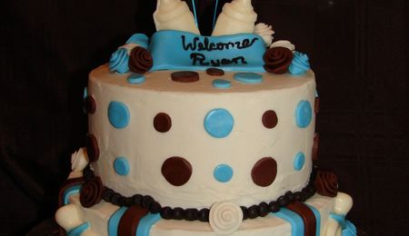 Blue, Brown And Polka Dot Boy Baby Shower Cake