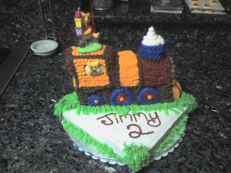 This was for my friends son's birthday. He wanted a train but also wanted Pooh, so I made Pooh the driver. I think the train came out good, but the base could use some work. My DH was a great help with this one!