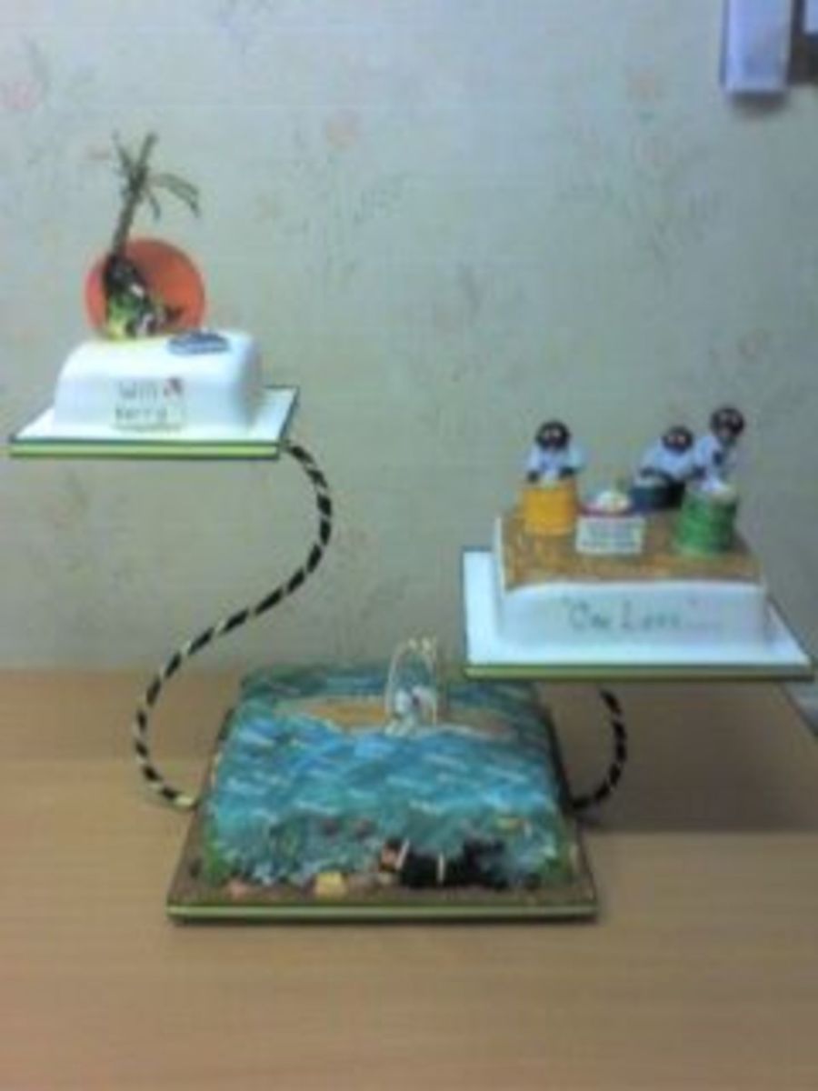 Jamaican Wedding theme with couples dog under floral arch, showing schoober diver, steel band and rastarfarian top ornament