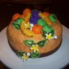This is a banana cake with cream cheese buttercream and all the decorations are mada with mmf i hope you like it!