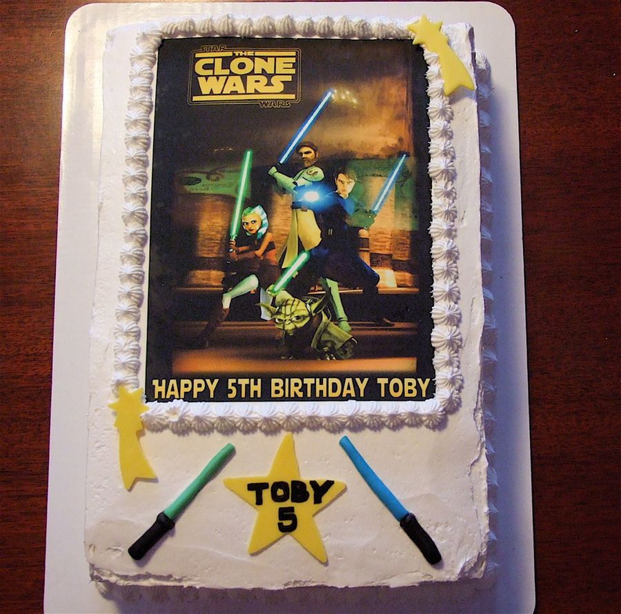 Client wanted the clone wars image. Fondant/gumpaste light sabers.