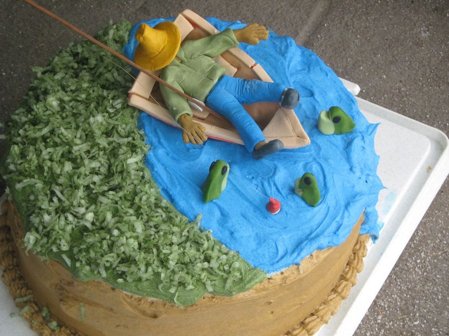 I used gumpaste and fondant for the man, boat and fish.