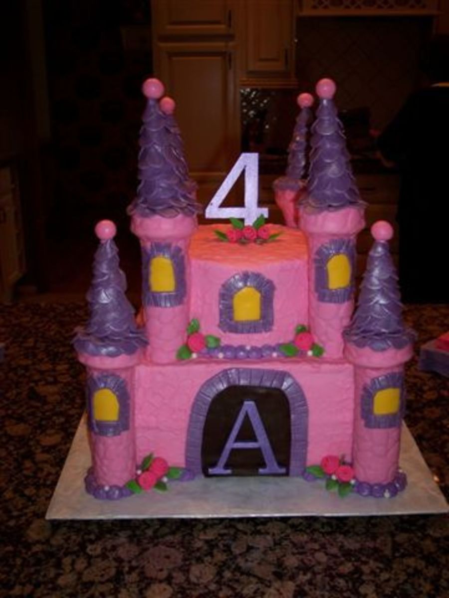Thanks for the inspiration jo032 and fellow CC'ers. This was for my daughter's fourth birthday. The cake is a 10X10 doubled layer on bottom and an 8" round on top. I used papertowel rolls for the towers and cake and sugar cones for the turrets. It was about 10 hours of work.