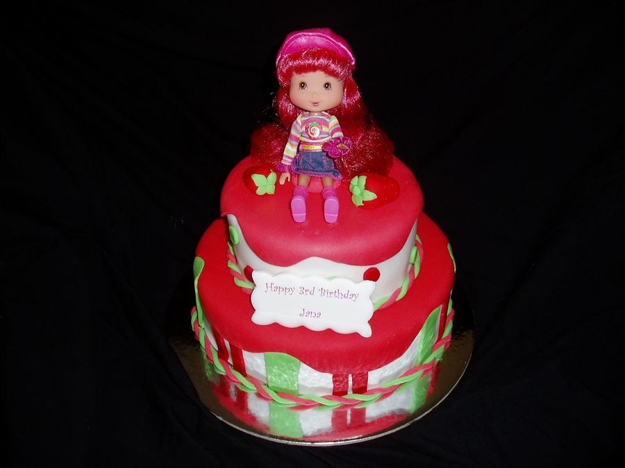 this is my 1st photo on cakecentral, hopefully more to come. Choc mud cake covered in rtr. strawberries made out of sugar paste.