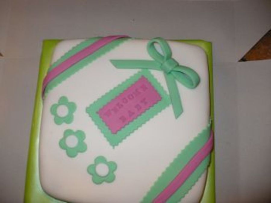 Couldn't figure out how to make the baby belly cake big enough to serve 30. I didn't want it sitting on a sheet cake. So this is made to match the baby belly cake. Flowers, bow, 'welcome baby' plaque, all the same elements from the baby belly.