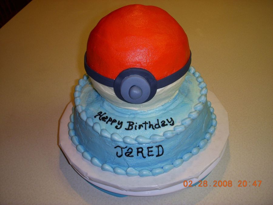 this is just yellow cake... buttercream icing.... poke' ball made with sports ball pan... made for 10 yr. old boy... some fondant decorations