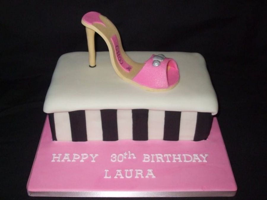 Black white sugarpaste stripe shoebox with fondant hand moulded shoe.