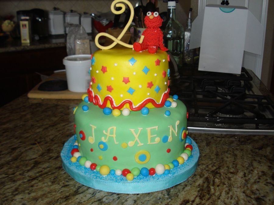 Chocolate with peanut butter filling and vanilla cake with vanilla buttercream. Elmo is fondant with ri. This was a gift for my friend's little boy.