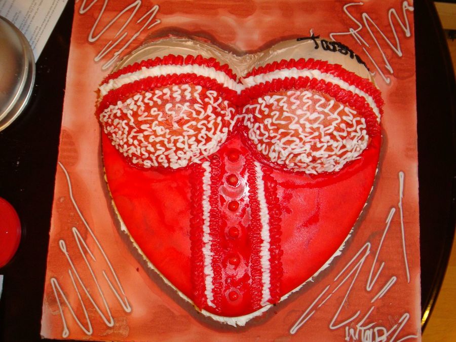 Made for a co-worker's boyfriend yellow heart shaped cake with sports ball top airbrushed white fondant. Inspired by a cake I saw here