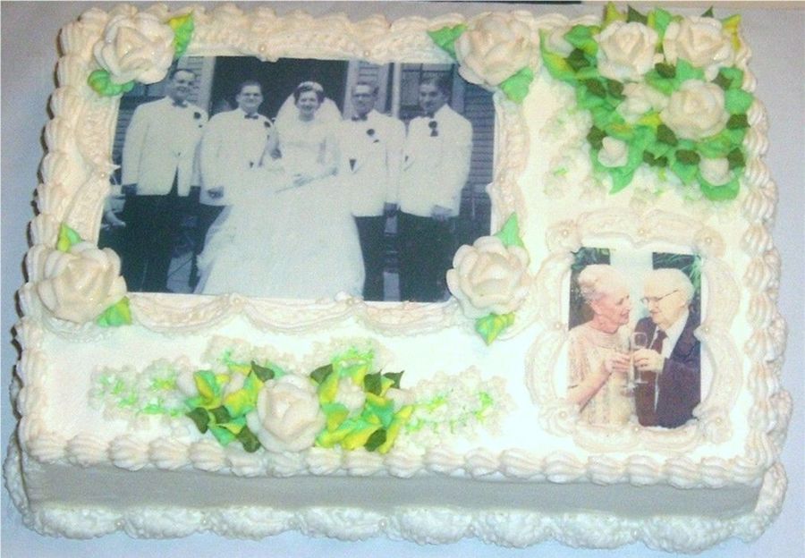 Banana cake with Rum BC filling and BC decs. I also added icing images that were requested by the son of the couple. Thanks for looking.