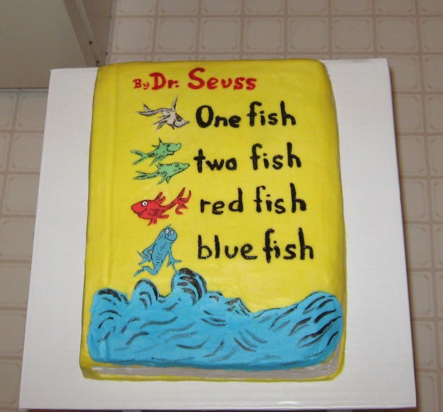 marble cake with vanilla icing all covered in butter cream with sugar paste (fondant) fish.