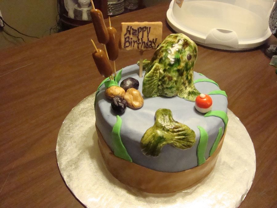 my first fishing cake I made for an avid fisherman all mmf and the fish is rkt covered in mmf.